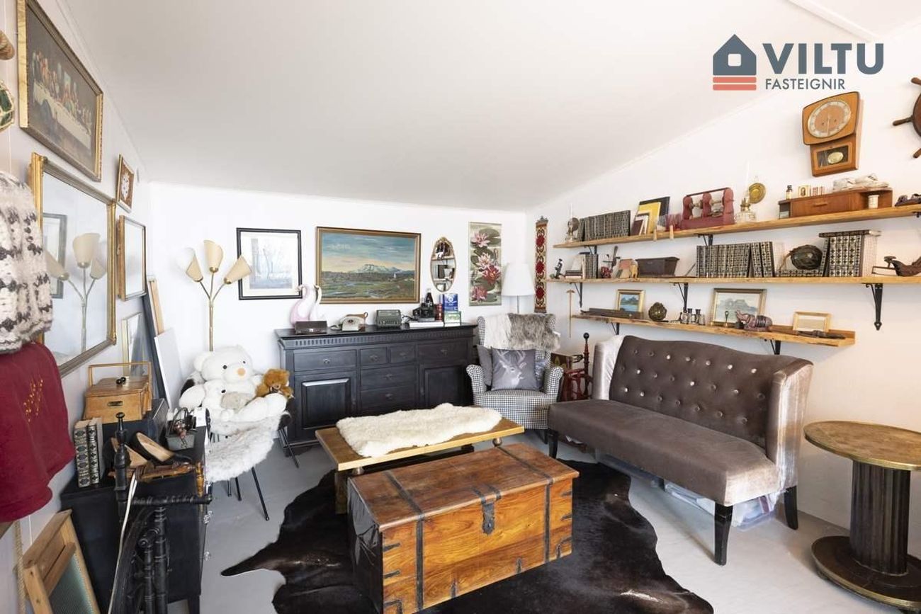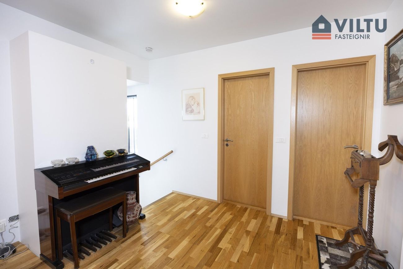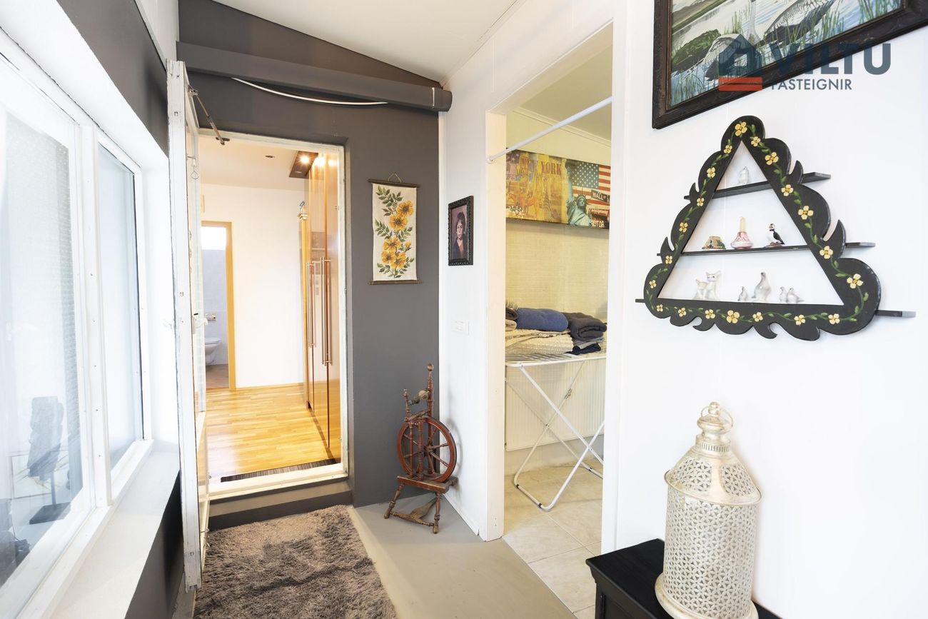 Viðbygging ofan á bílskúr. Bætt við árið 2009 og er um 30m2. Þvottahúsið er í hluta rýmisins en restin er rúmgott og bjart rými með útgengi á góðar svalir til vesturs með miklu útsýni.