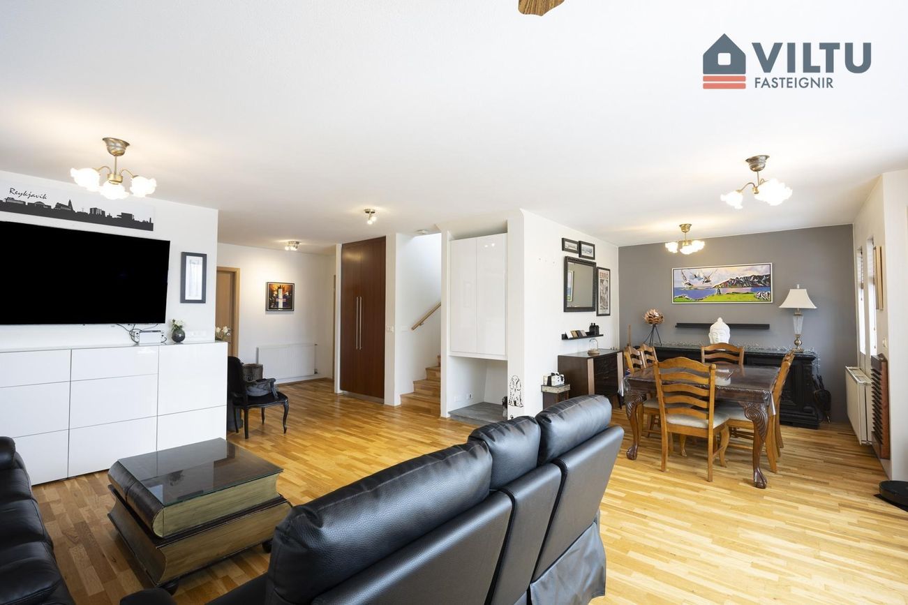 Um er að ræða vel skipulagt 206fm. endaraðhús ásamt um 30m2 óskráðu rými á 2.hæð. Heildarstærð er því um 235m2 og þar af er bílskúr 36.fm.