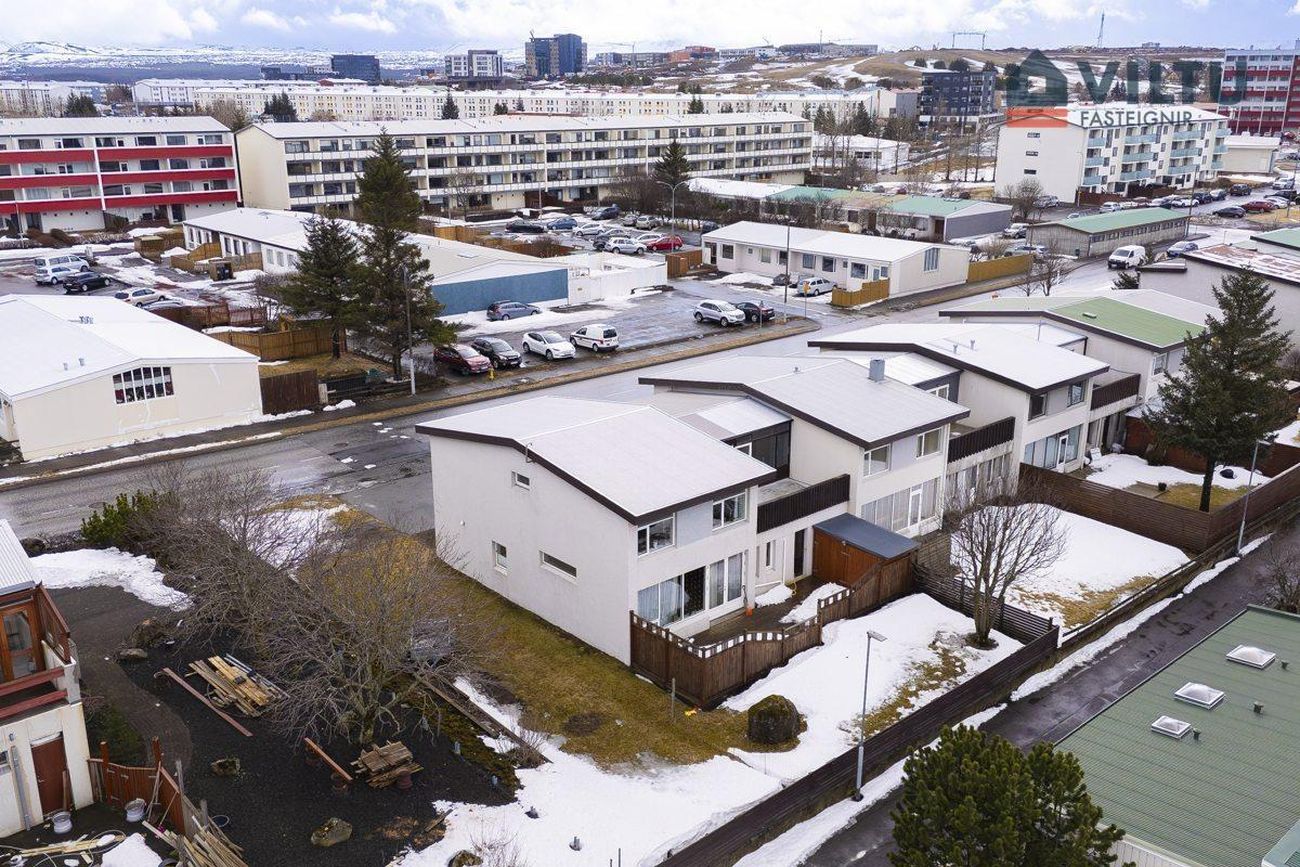 Þar sem húsið er endaraðhús er nægt pláss til að stækka sólpall, koma fyrir leiktækjum og/eða til að geyma t.d. hjólhýsi/tjaldvagn og kerru.