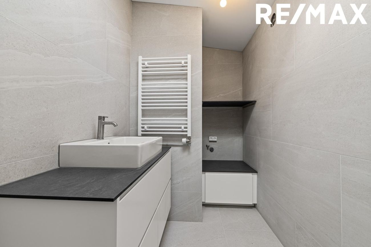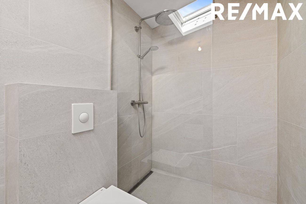 Baðherbergi: Glæsilegt baðherbergi, endurnýjað frá grunni. Skólplagnir endurnýjaðar að stamma og svo fóðraður út í brunn. Flísalagt með 60x120 flísum frá Álfaborg, vegghengt salerni og nýjar innréttingar með Grohe blöndunartækjum. Nýr handklæðaofn. Lagnir fyrir þvottavél og þurrkara eru til staðar, þó möguleiki sé á að skipta út þvottaaðstöðu fyrir skáp vegna þvottahúss á neðri hæð. Sturta með glervegg og náttúruleg lýsing frá þakglugga.