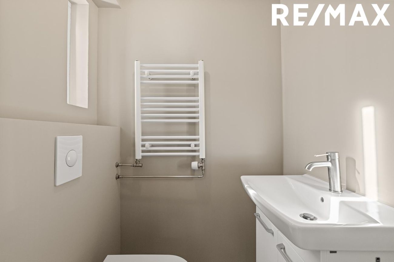 Gestasalerni / Baðherbergi: Nýlega smíðað frá grunni með nýjum lögnum og niðurfalli. Flísalagt með 60x120 flísum frá Álfaborg, vegghengt salerni og nýjar innréttingar með Grohe blöndunartækjum. Nýr handklæðaofn. Gert ráð fyrir að koma fyrir sturtu ef búa á til auka íbúð.