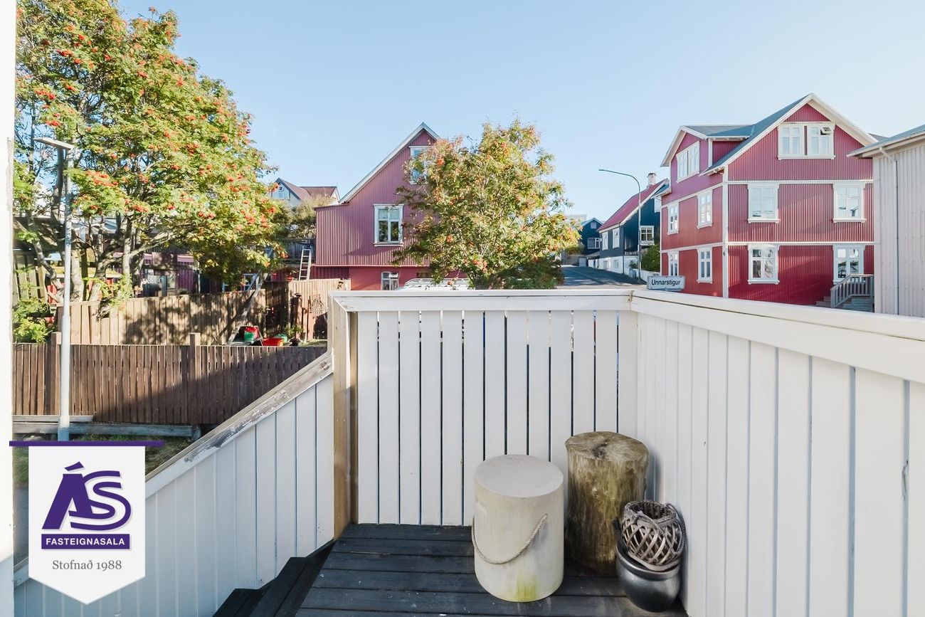 * Fallegar franskar svalir með útsýni yfir miðbæinn og út á sjó.