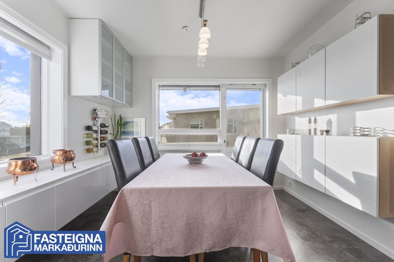 Fjórar svalir með útsýni í allar áttir, þar á meðal suður- og vestursvalir.