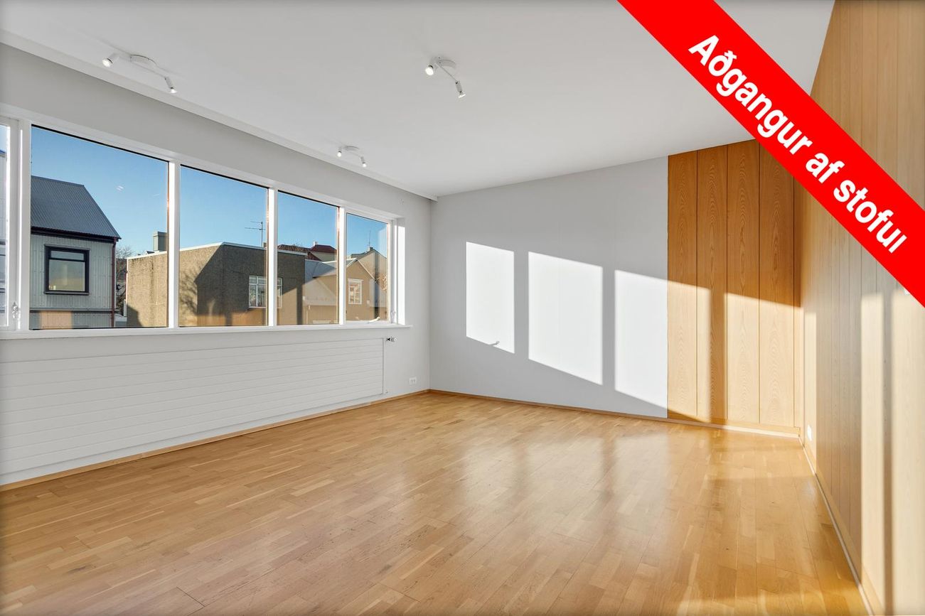 Hæðin með sérinngangi og er 195 fm í það heila. Hægt að leigja allt að fimm svefnherbergjum. Möguleiki á að leigja bílastæði að auki.