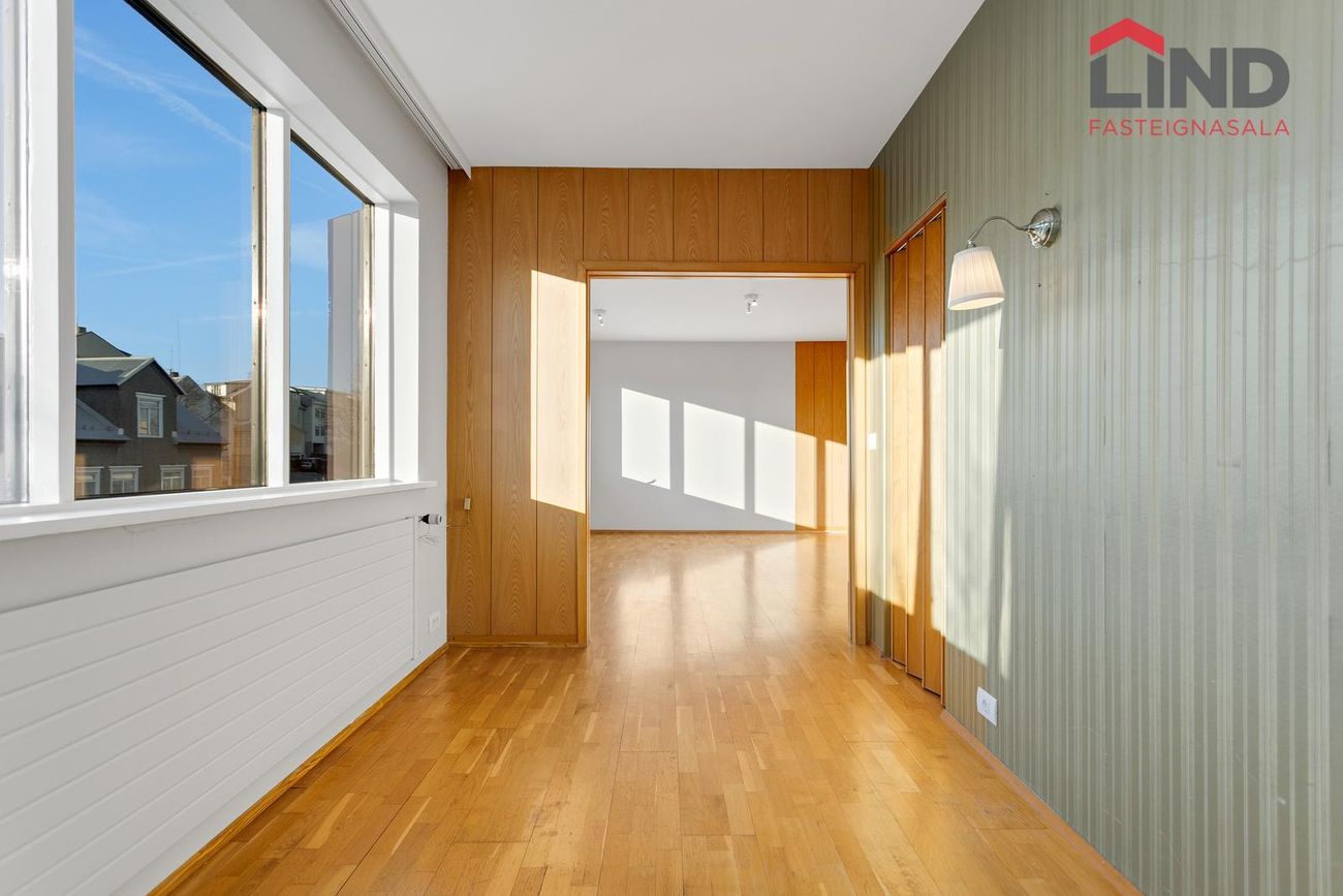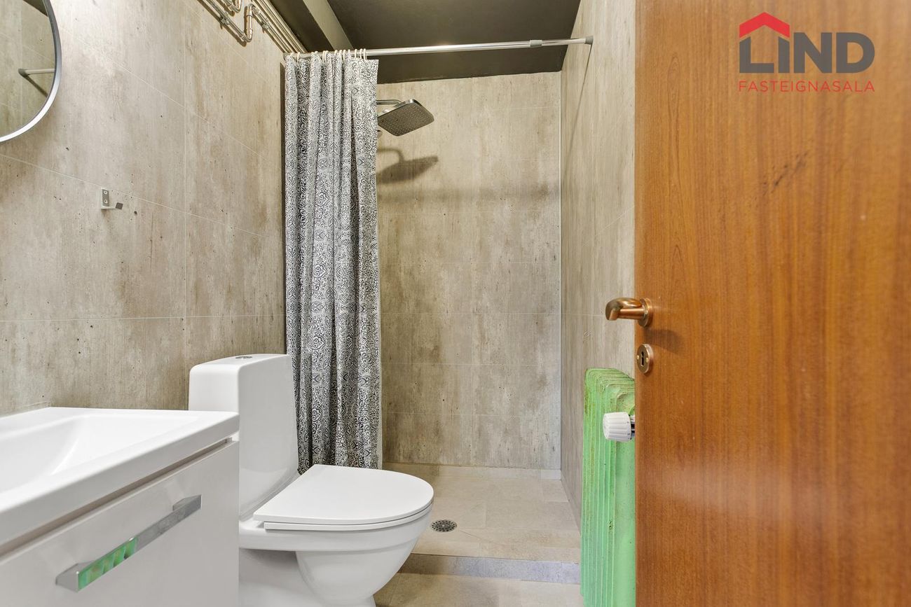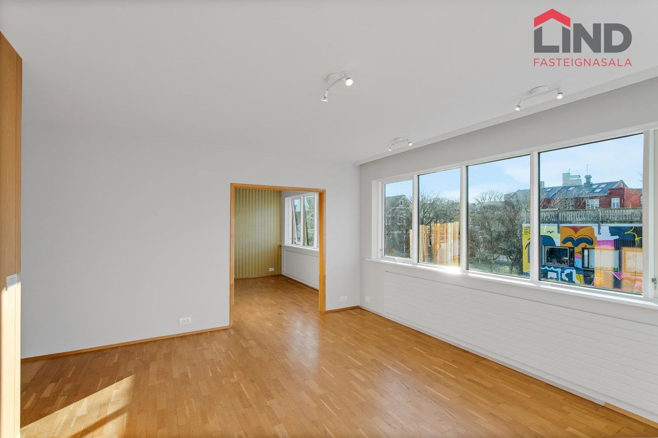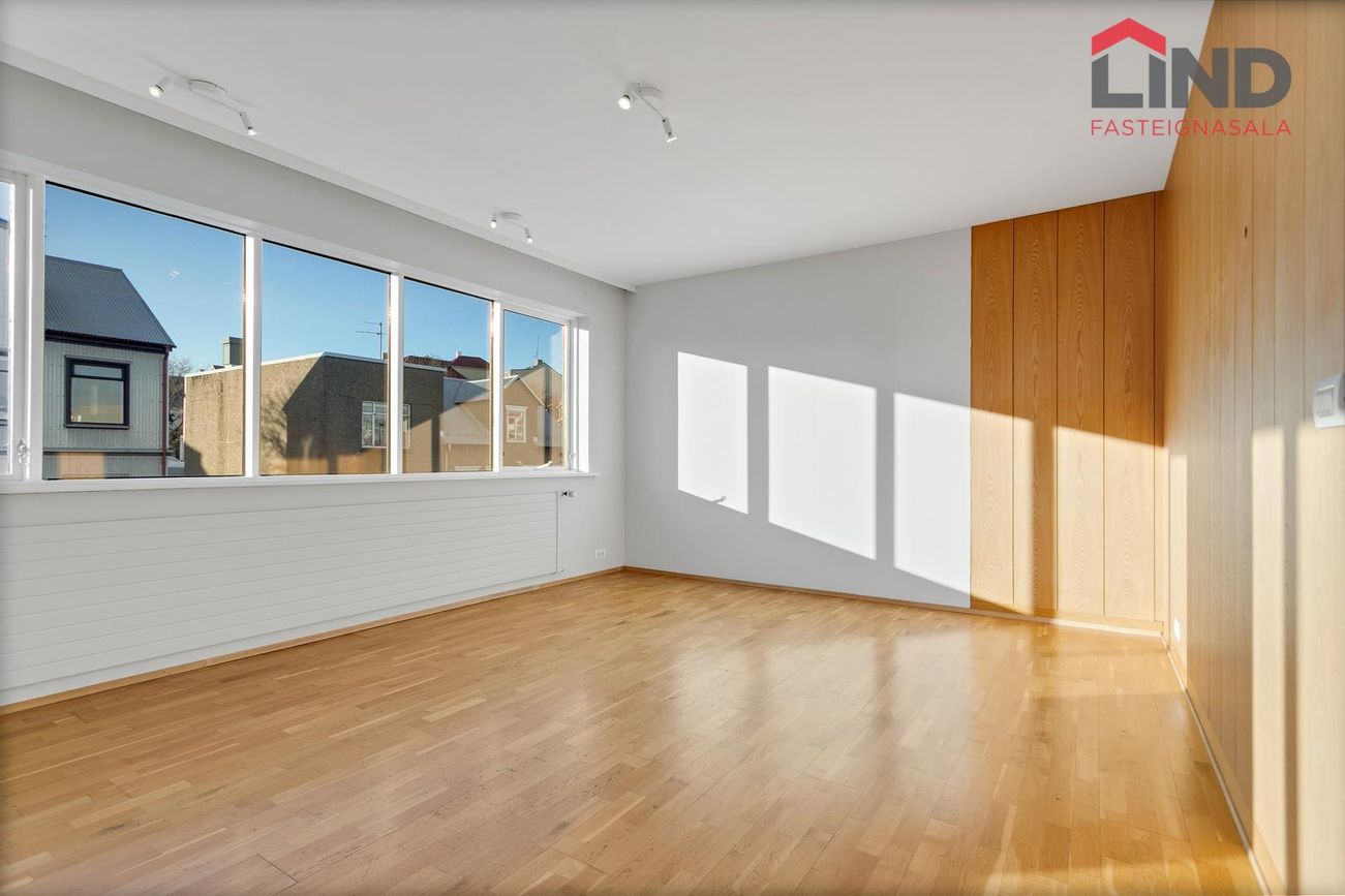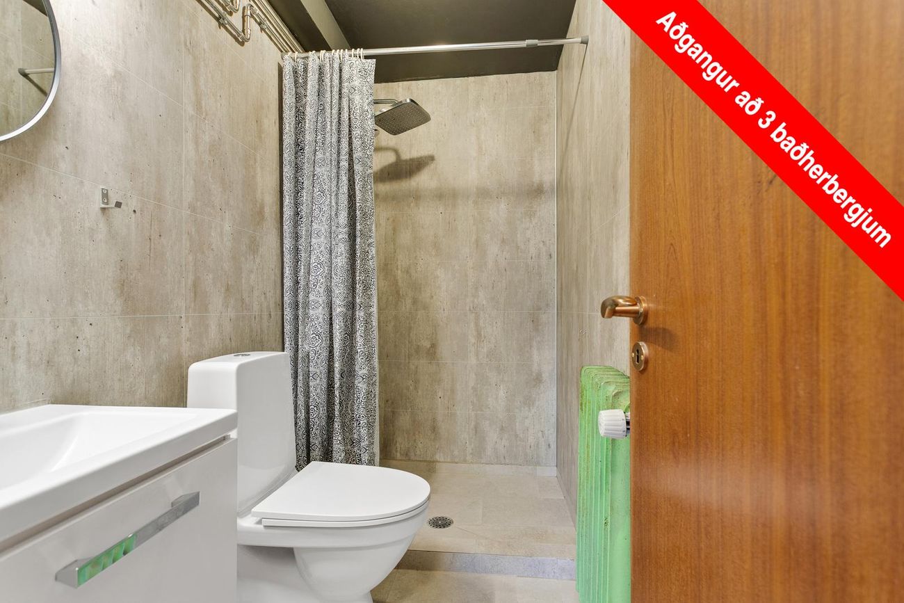Hæðin með sérinngangi og er 195 fm í það heila. Hægt að leigja allt að fimm svefnherbergjum. Möguleiki á að leigja bílastæði að auki.