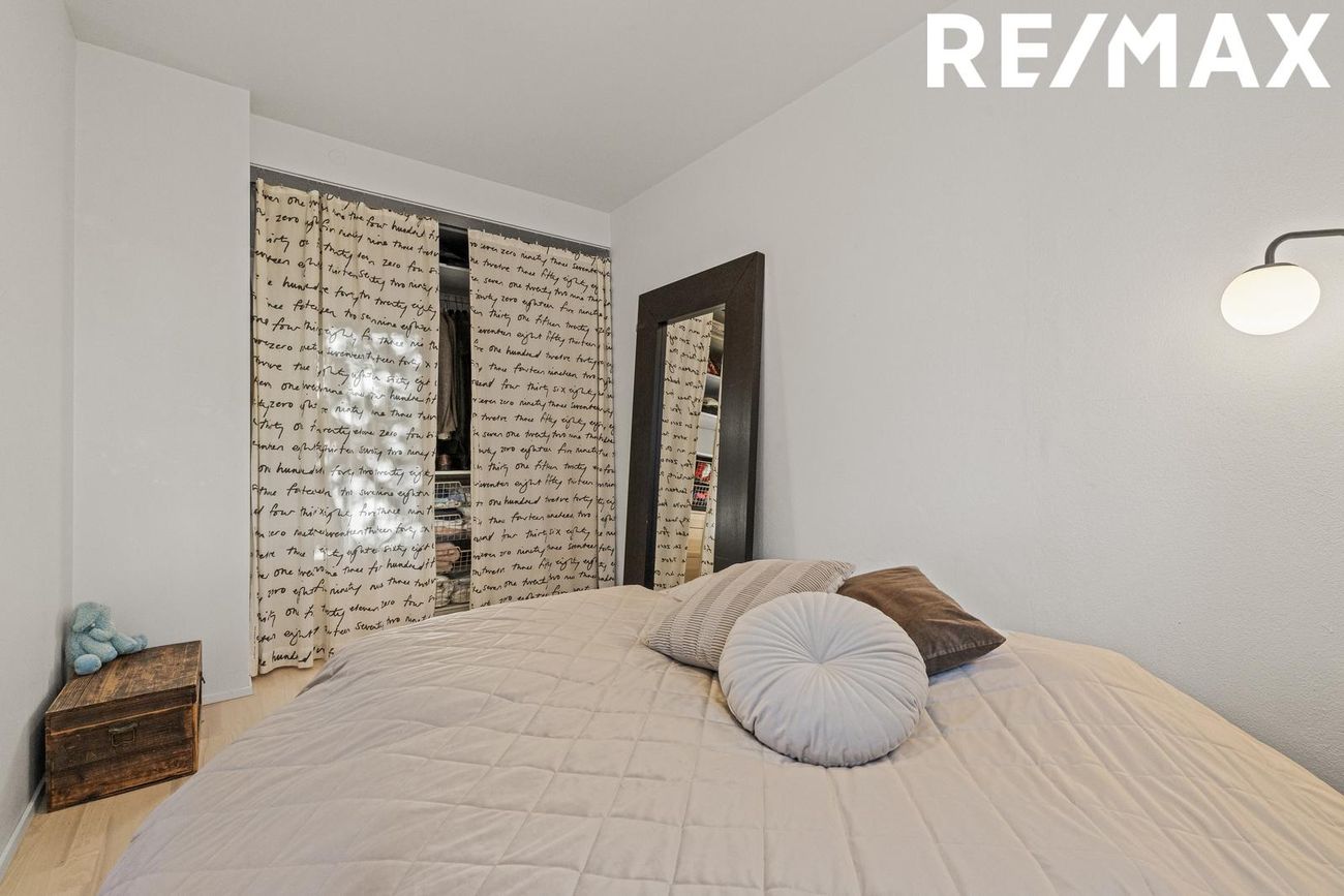 Herbergið er rúmgott og bjart með opnum, innbyggðum fataskáp.