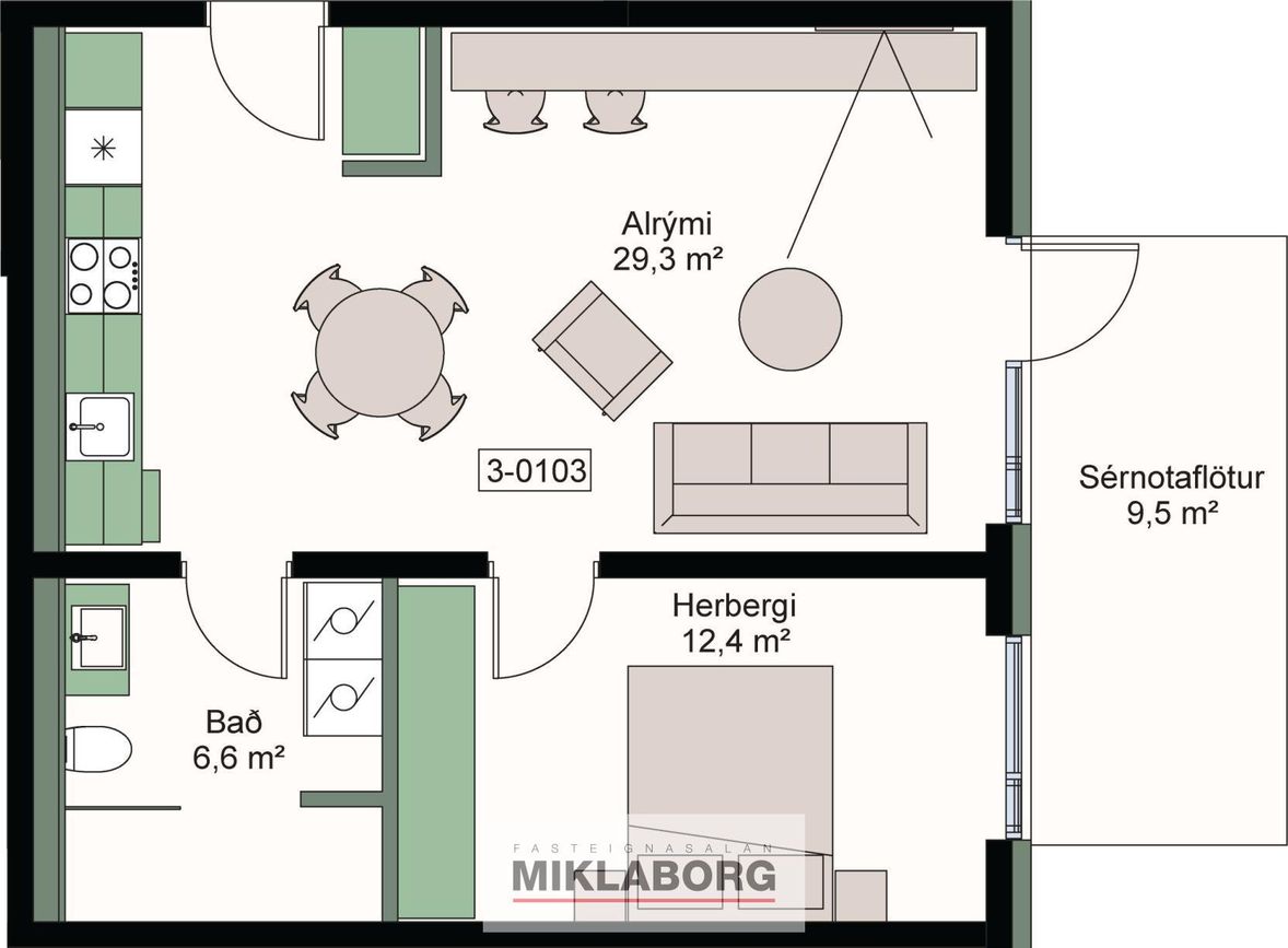 0203 ![]() | 2 | 57,10 m² | 63.000.000 kr. 17. febrúar 2026 | 36.613.000 kr. 5. apríl 2024 |