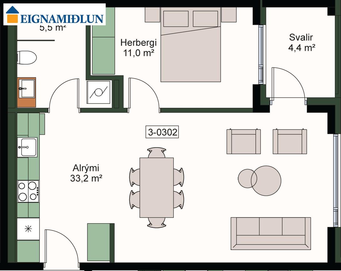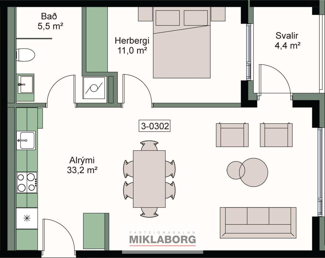 0203 ![]() | 2 | 57,10 m² | 63.000.000 kr. 17. febrúar 2026 | 36.613.000 kr. 5. apríl 2024 |