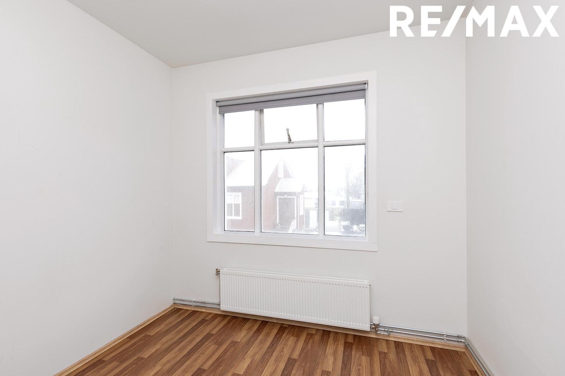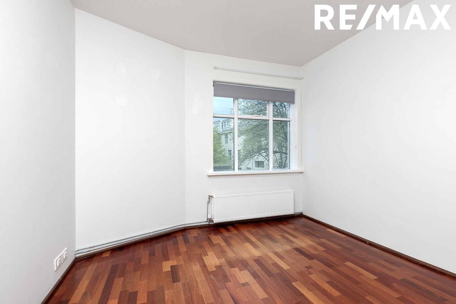 Barnaherbergin: Eru tvö rúmgóð og björt með parket á gólfi og fataskáp.