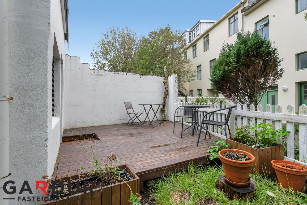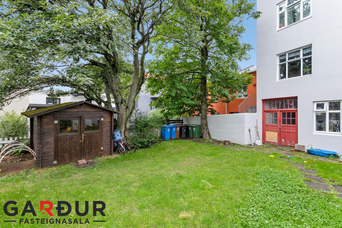 Sameign hússins er mjög snyrtileg og húsið fallegt að sjá. Baklóðin er sérlega falleg, í lokuðu skjólgóðu porti.