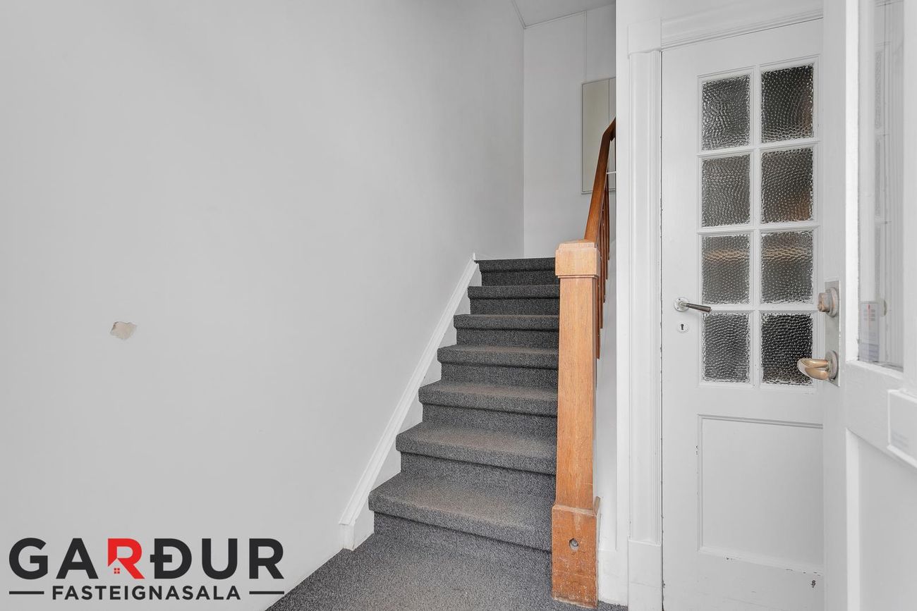 Gengið er inn í kalda sérgeymslu úr garði.Húsið hefur fengið gott viðhald:Árið 2000 var byggt ofan á húsið efstu tvær hæðirnar. Árið 2011 var húsið múrviðgert. Árið 2012 var húsið og þak hússins málað. Árið 2013 var stigagangur í sameign málaður og eldhúsið fært inn í stofu og barnaherbergi gert í stað gamla eldhússins. Árið 2014 var skipt um teppi í stigagangi á sameign hússins. Árið 2017 voru frárennslis lagnir myndaðar og allt var í topp standi. Árið 2018 var baðherbergið endurnýjað sem og allar ofnalagnir og ofnar. Árið 2023 var hús múrviðgert og málað. Haustið 2024 gólf flotuð, parekt lagt, nýir fataskápa, rafmagn yfirfarið, nýlegir ofnar. Íbúðin er nýlega máluð.