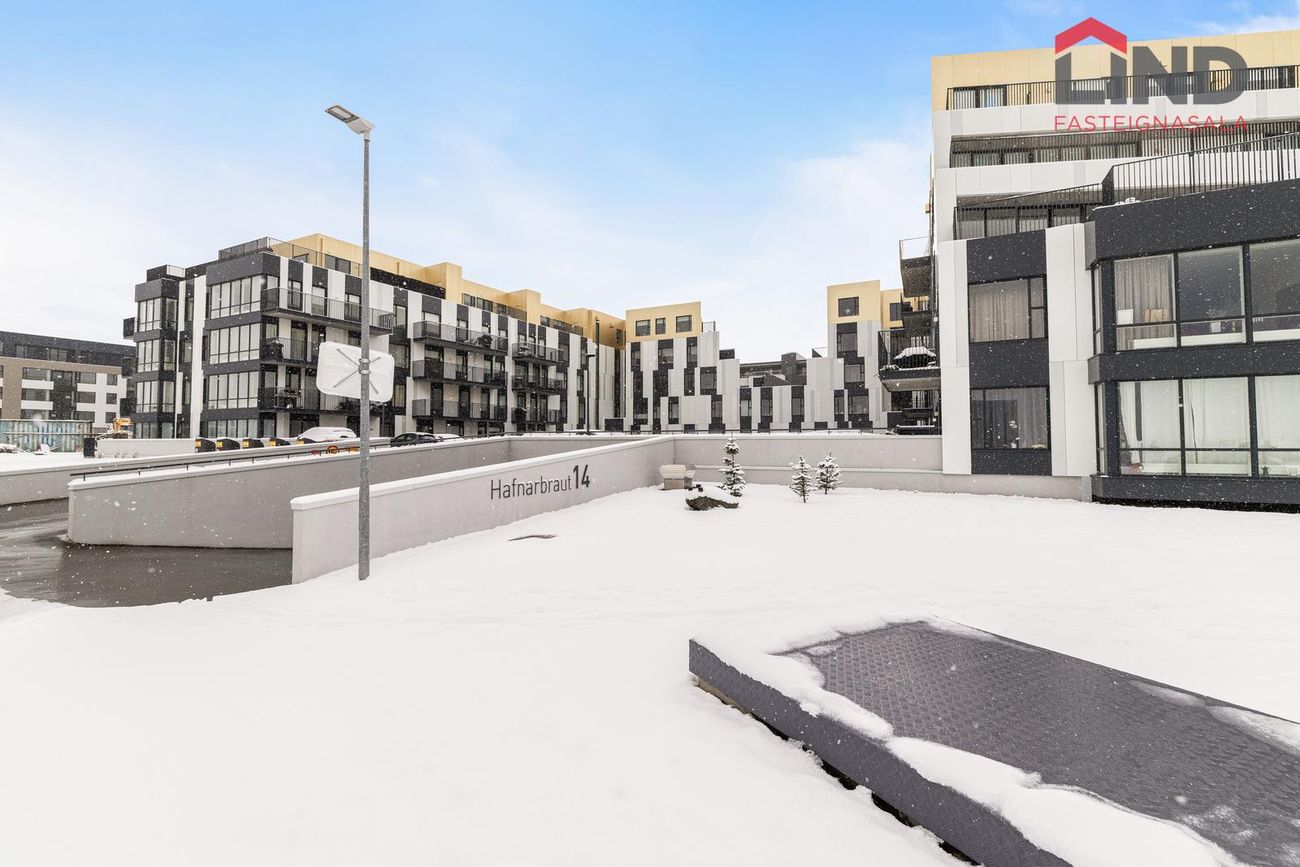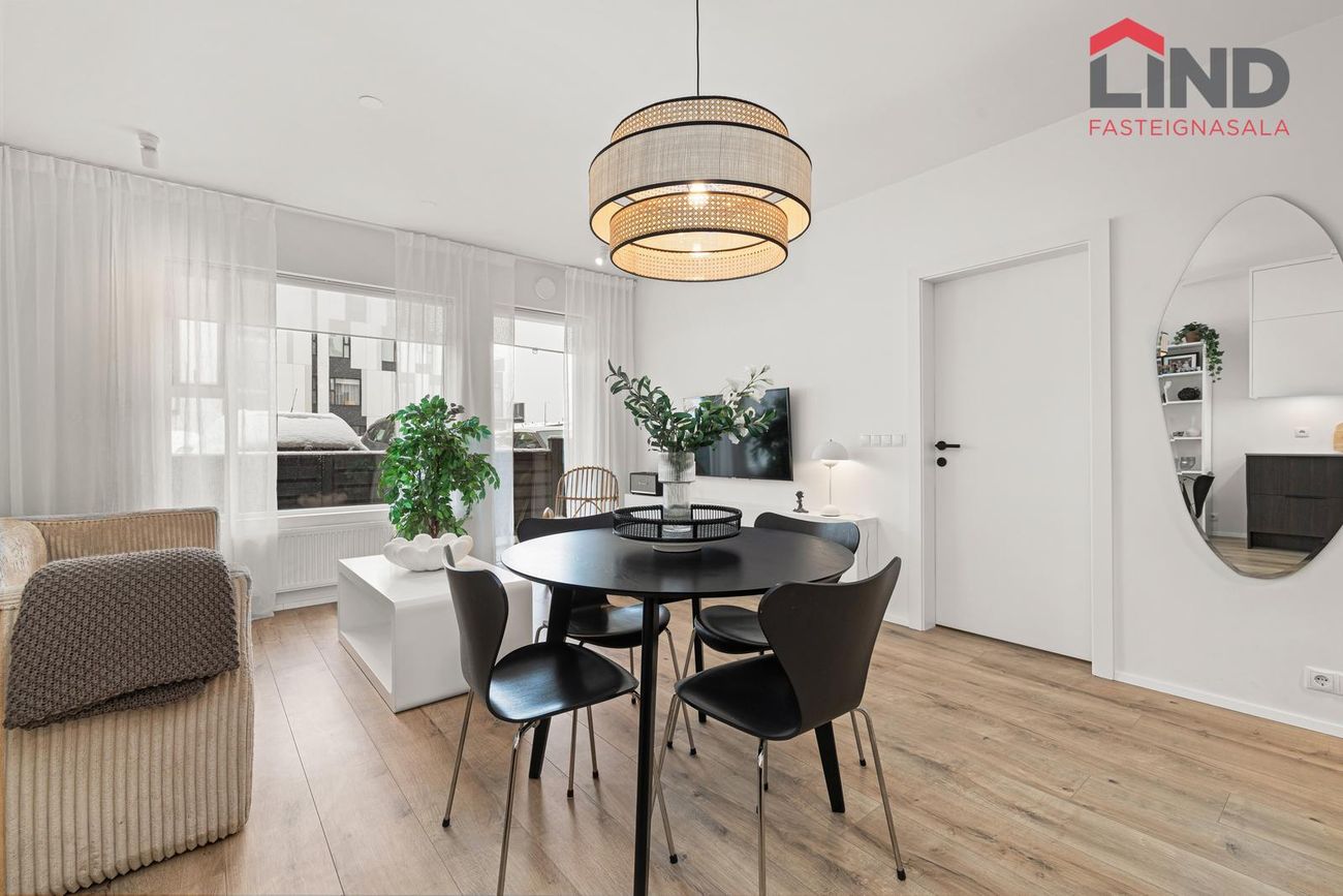 Lind fasteignasala / Heimir Hallgrímsson lögg. fasteignasali kynnir glæsilega og vel skipulagða 2ja herbergja 58,9 fermetra íbúð á 1. hæð í nýlegu fjölbýli með lyftu við Hafnarbraut 14A í Kópavogi. Íbúðin er með afgirtri verönd til vesturs og rúmgóðri geymslu innan íbúðar. Vandaðar og sérsmíðaðar innréttingar frá Voke-III sem ná upp í loft og akrílsteinn (Durastone) á borðum.