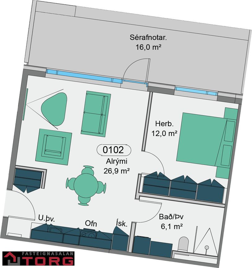 Fasteignasalan TORG kynnir: Góð 2ja herbergja íbúð með sérafnotareit, um 16fm. inn í sameiginlegan garð. Íbúð merkt:0102, sem skilast fullbúin án gólfefna. Íbúðin er alls 59,1 fm að stærð á 1. hæð í góðu lyftuhúsi. Íbúðin sjálf er skráð 52,2fm og skiptist í anddyri, alrými með eldhúsi og stofu með útgengi út á svalir, 1 svefnherbergi, baðherbergi með þvottaaðstöðu og sér geymslu í sameign merkt: 0005, skráð 6,9fm. ásamt bílstæði í bílakjallara merkt: B42. Allar nánari upplýsingar, teikningar, og skilalýsingu er hægt að nálgast með að hafa samband við Elku Guðmundsdóttir, fasteignasali í GSM: 863-8813 eða elka@fstorg.is Sjá nánari upplýsingar á heimasíðu verkefnisins HÉRVetrarbrautin er hluti af nýju hverfi við jaðar friðlandsins í Heiðmörk.Húsin eru í randbyggðarformi með fallegum inngarði. Íbúðir á jarðhæð hafa sérafnotareiti en íbúðir á efri hæðum eru með svalir. Einstök staðsetning við golfvöll GKG við Vífilstaði þar sem hægt er að bruna á golfbílnum beint úr frístundaskúrnum út á völl.