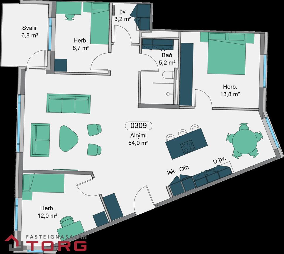 0308 ![]() | 2 | 61,80 m² | 71.900.000 kr. 1. apríl 2026 | - - |