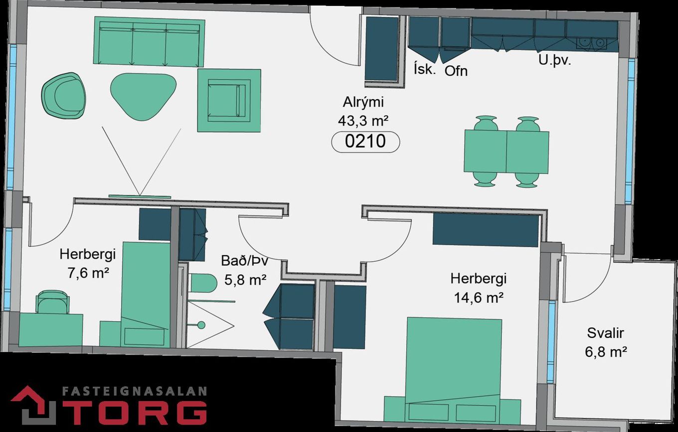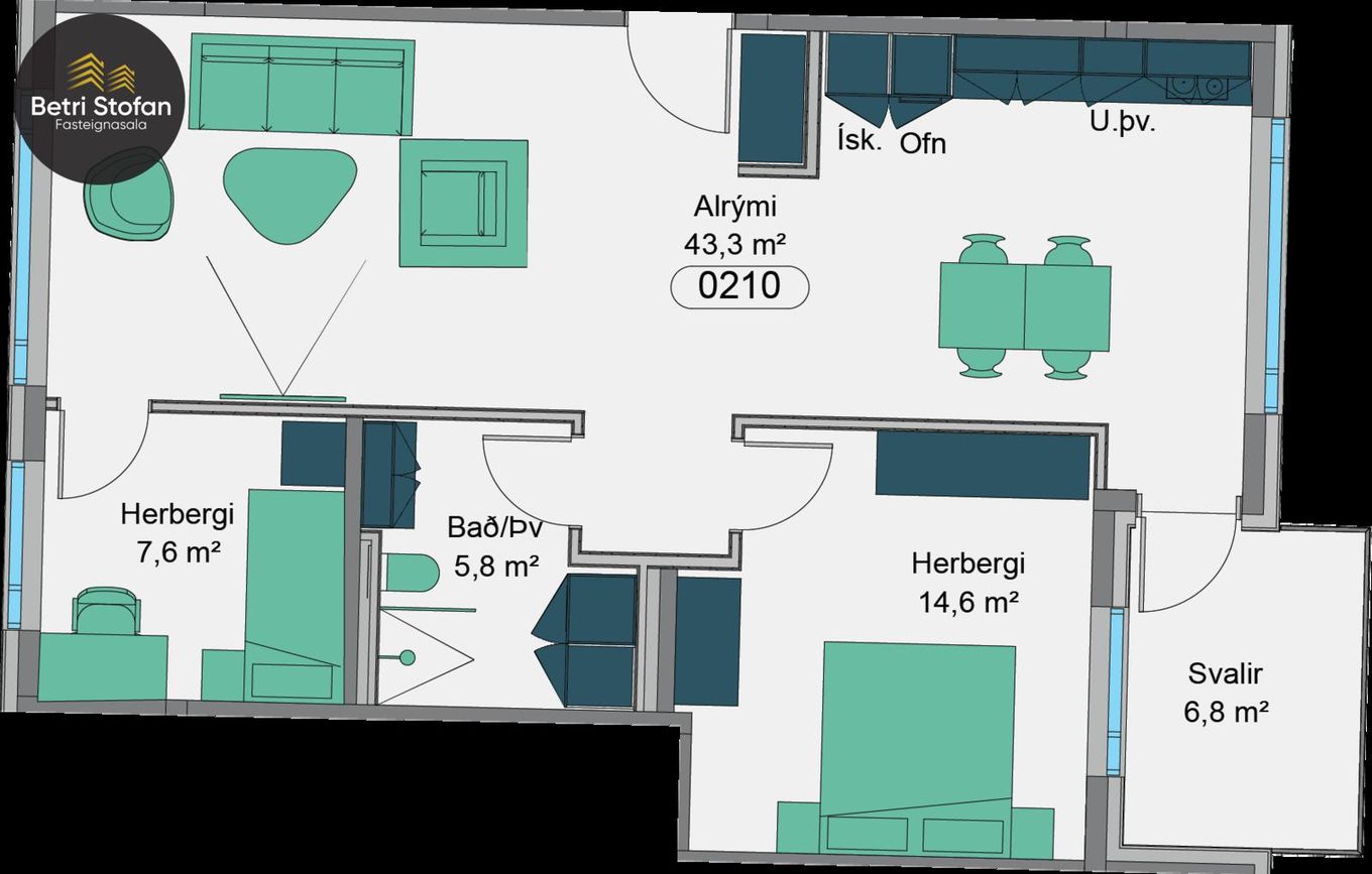 | 2 | 60,90 m² | 64.900.000 kr. 23. júlí 2025 | 64.900.000 kr. 5. nóvember 2025 |