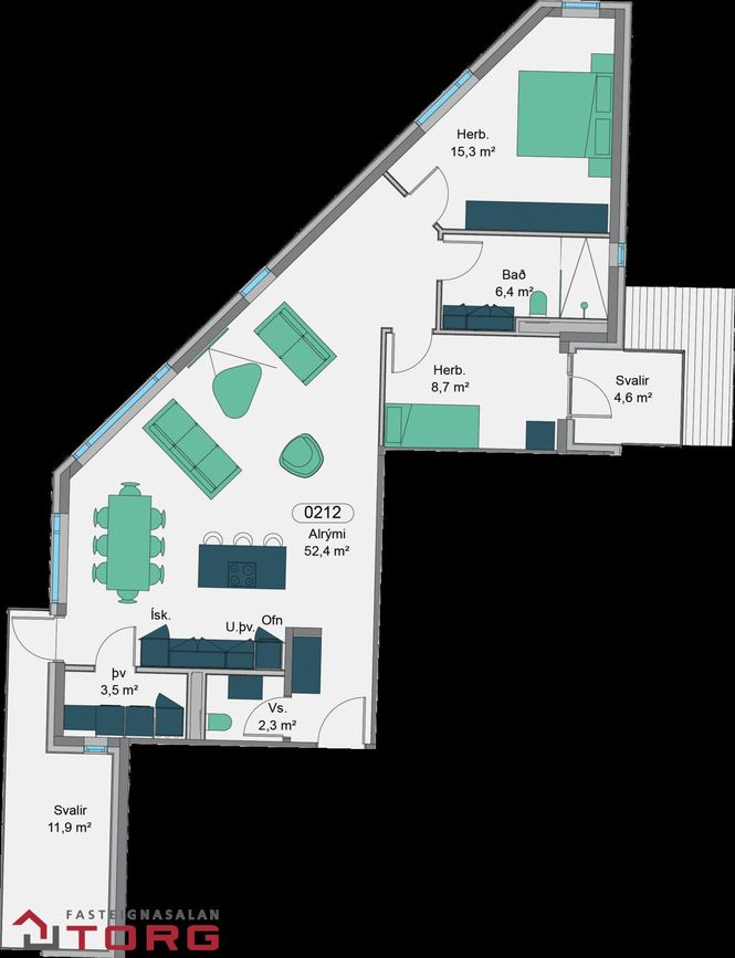 | 3 | 124,50 m² | 137.900.000 kr. 16. mars 2026 | - - |