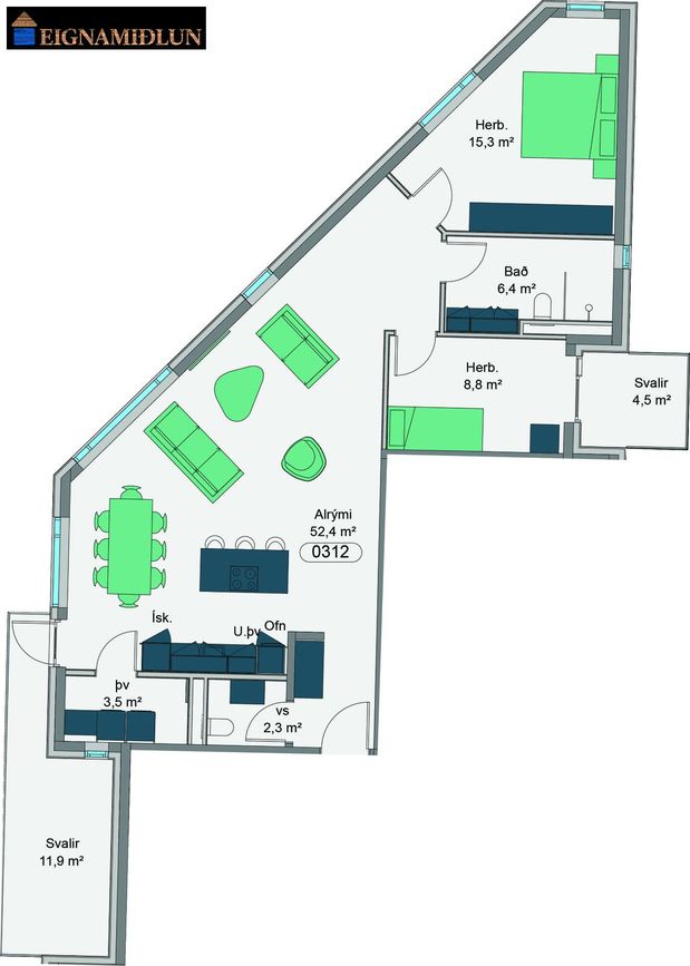 0312 ![]() | 3 | 124,50 m² | 137.900.000 kr. 16. mars 2026 | - - |