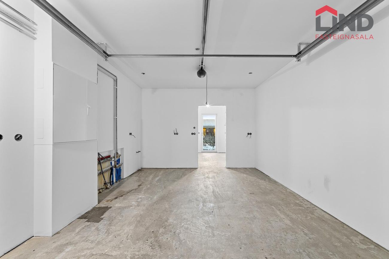 -Auk þess er möguleiki á að nýta 10,3 fm geymslu sem fjórða herbergi, með sérútgengi að aftan og einnig í gegnum bílskúr.Baðherbergi: Baðherbergi er hannað með góðu skipulagi. Frágangur samkvæmt skilalýsingu.