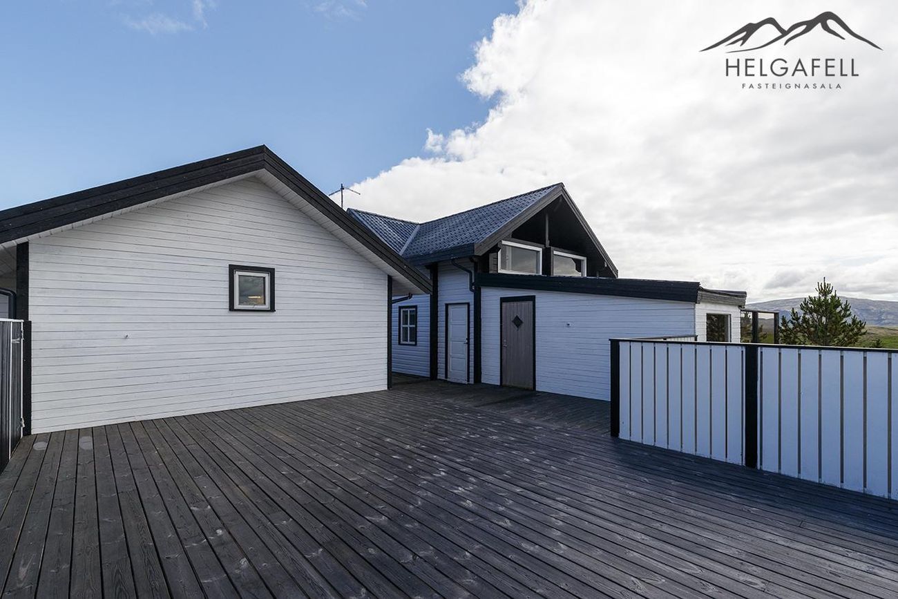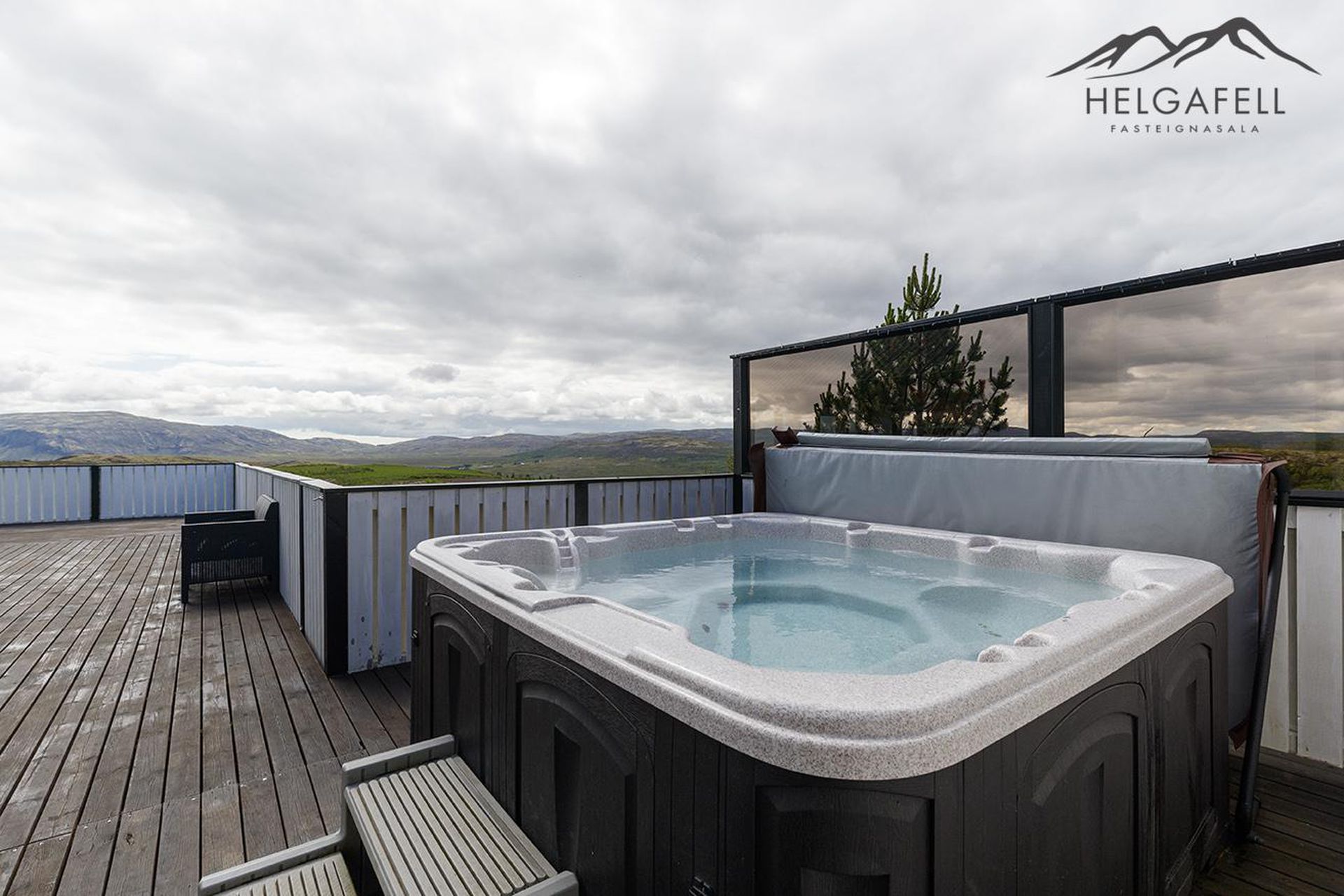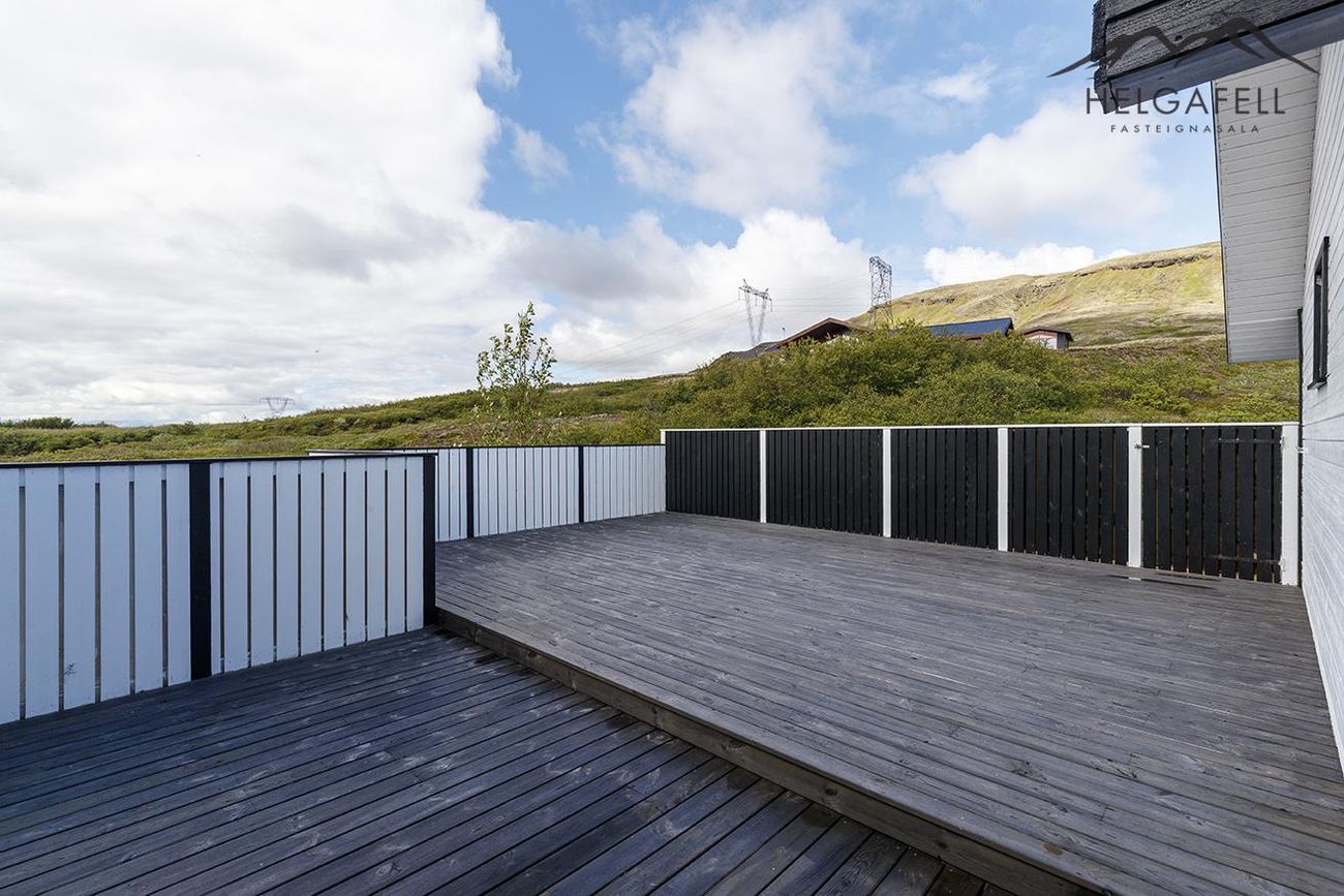 Pallur:Stór pallur er í kringum allt húsið ásamt aukapalli til austurs við bílskúrinn. Nýlegur heitavatnspottur á pallinum. Við hliðina á heita pottinum er