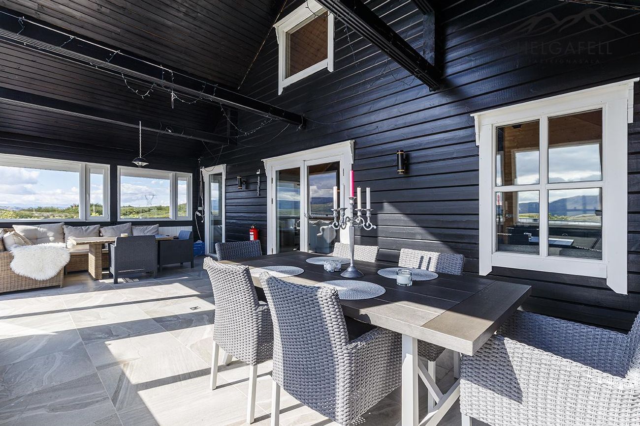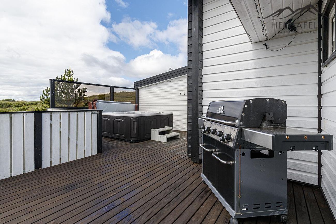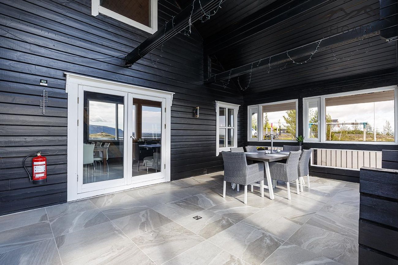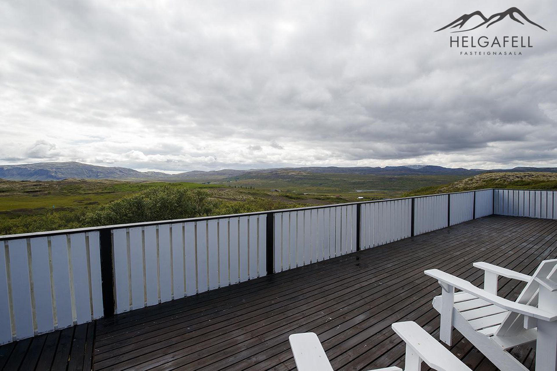Pallur:Stór pallur er í kringum allt húsið ásamt aukapalli til austurs við bílskúrinn. Nýlegur heitavatnspottur á pallinum. Við hliðina á heita pottinum er