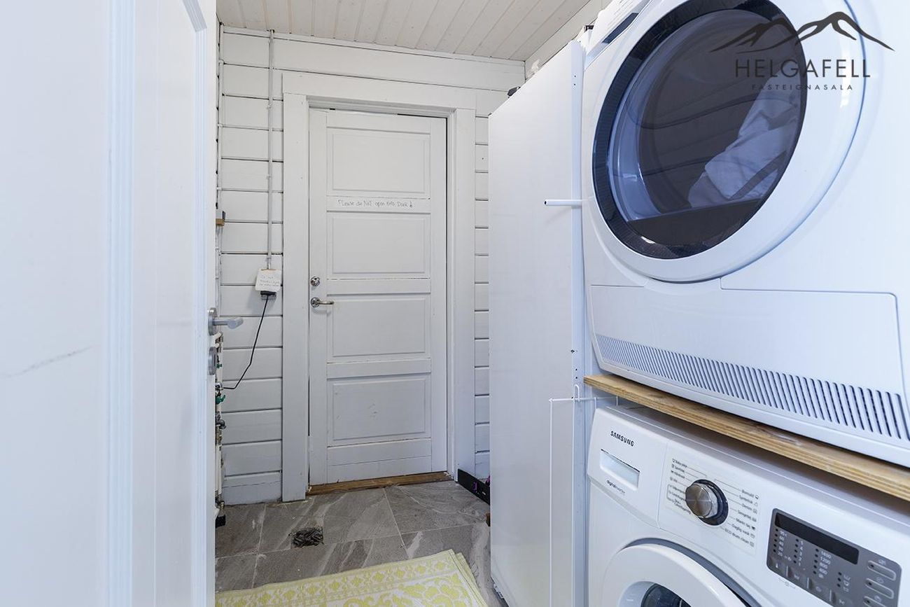 Þvottahús: Flísar á gólfi, innrétting fyrir þvottavél og þurrkara. Í dag er einnig ísskápur inni í þvottahúsinu. Útgengt úr þvottahúsi út á pall.