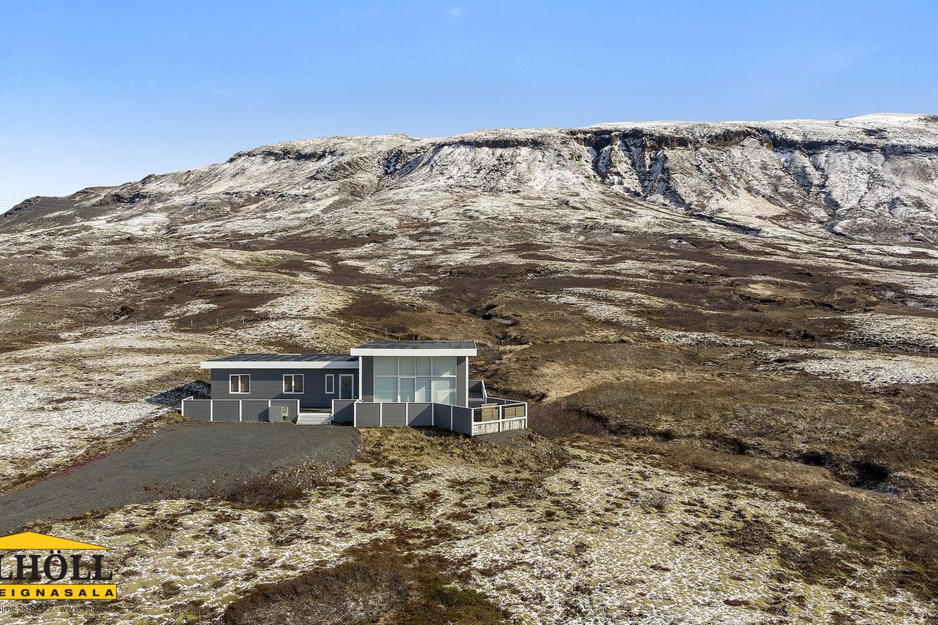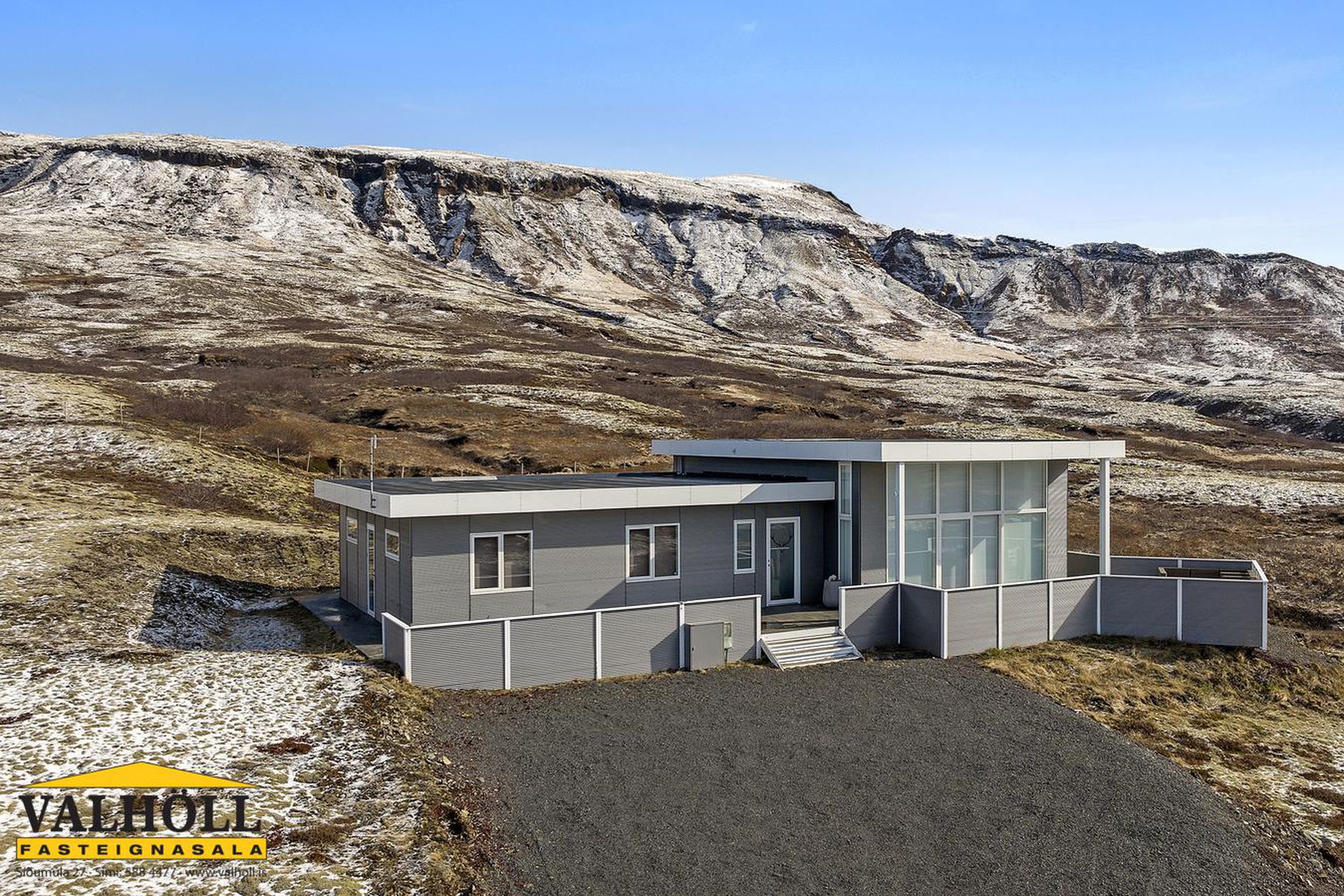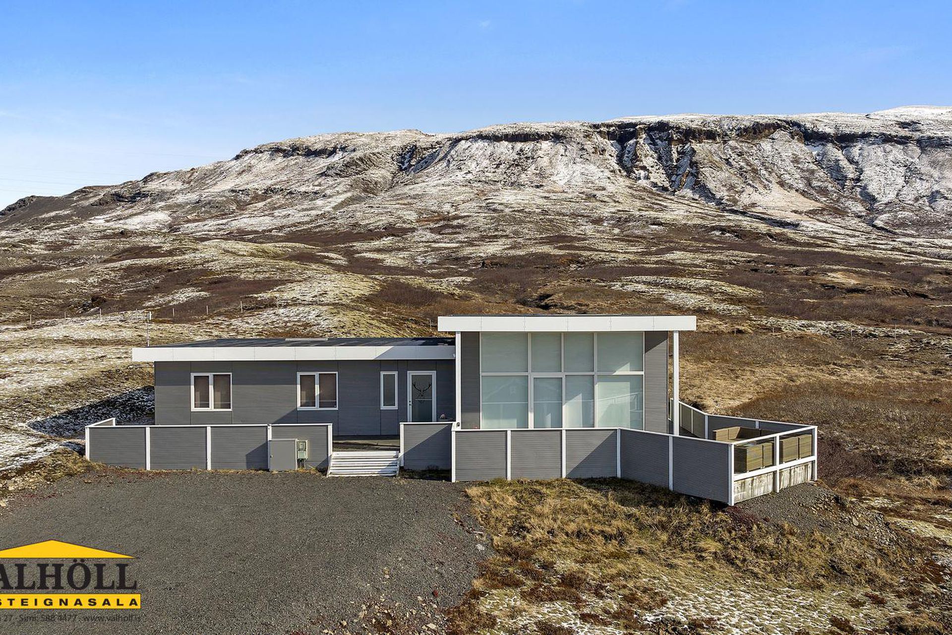 Valhöll kynnir: Glæsilegt 150 fm heilsárs sumarhús á einni hæð innst í Víðibrekku í landi Búrfells. Um er að ræða 8.230 fm eignarlóð sem er staðsett ofarlega í landinu og er þaðan stórbrotið útsýni til allra átta. Húsið er byggt árið 2017 og skartar nútímalegri hönnum með mikilli lofthæð í alrými og stórum gólfsíðum gluggum til austurs of suðurs. Fjögur svefnherbergi. Gólfhiti er í húsinu en stept veröndin umhverfis bústaðinn er einnig upphituð. Heitur pottur.