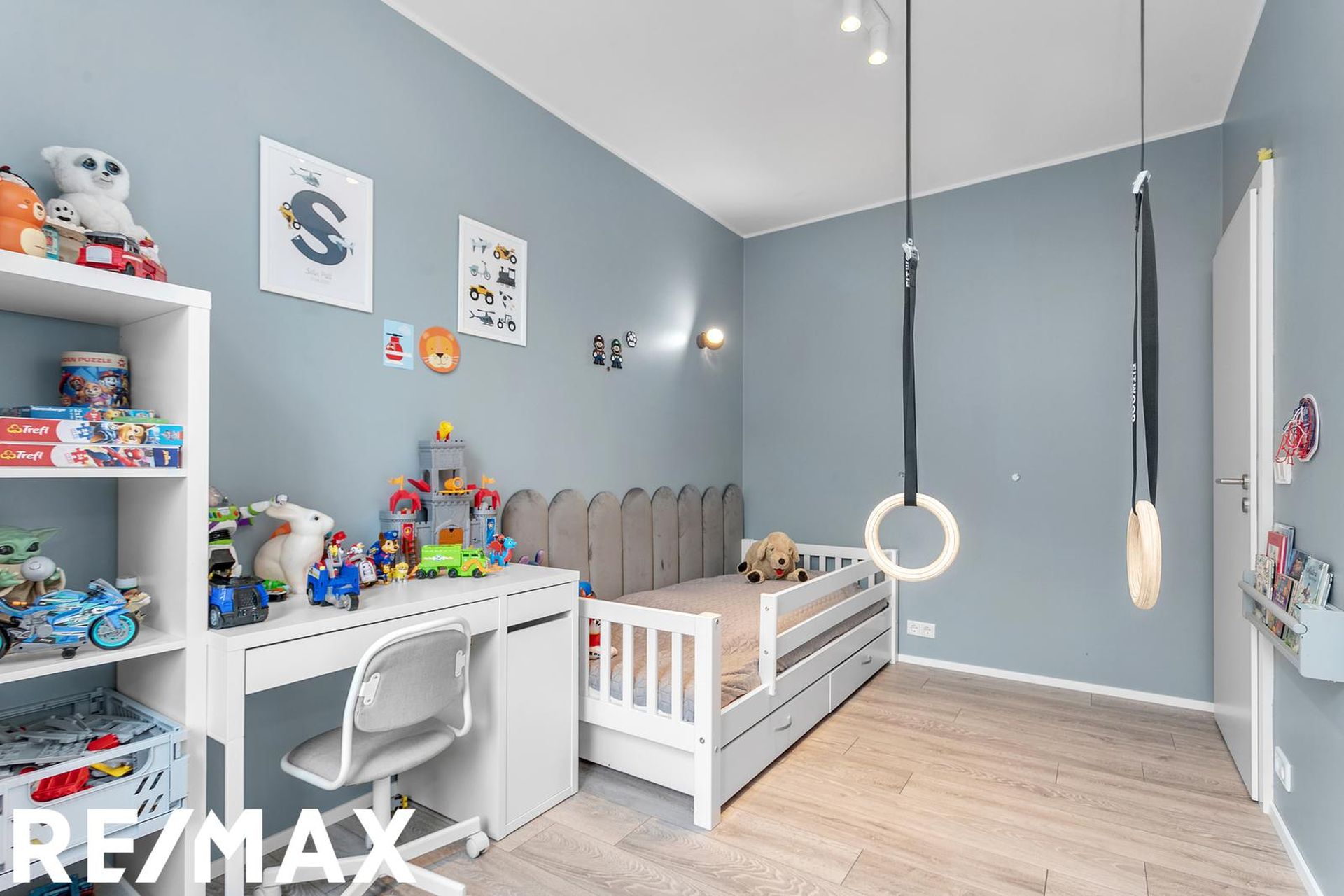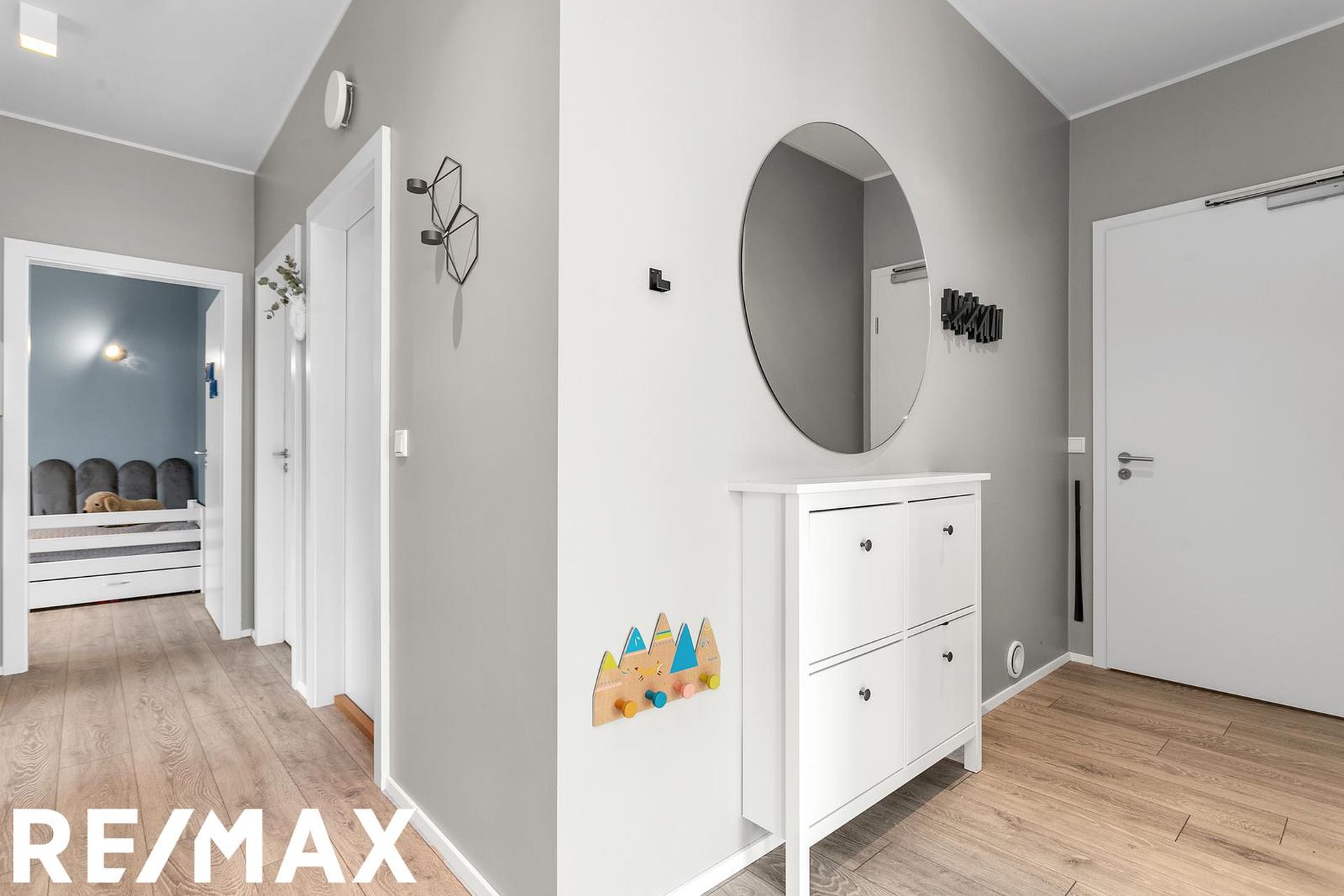 barnaherbergin tvö mjög rúmgóð með hvítum tvöföldum skápum frá GKS.