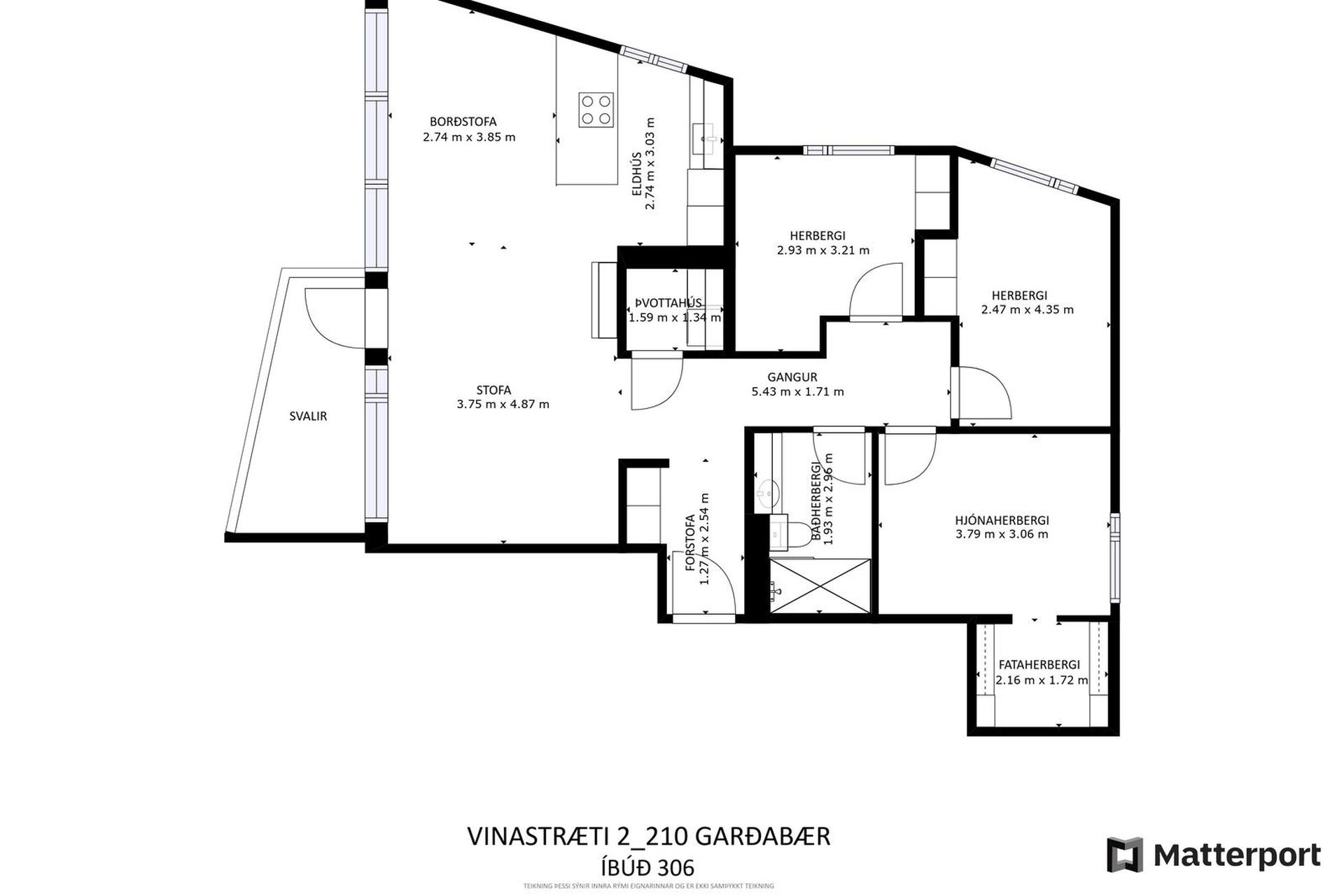 Svefnherbergin eru þrjú og eru
