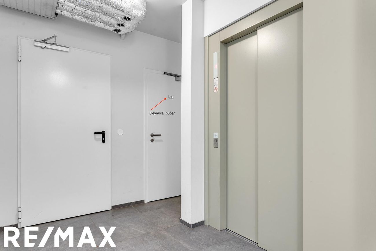 Í sameign er sér geymsla sem er 15,6 fm og er við hlið lyftunnar en ekki á sér geymslugangi líkt og aðrar geymslur í húsinu. Einnig er sameiginleg vagna- og hjólageymsla.
