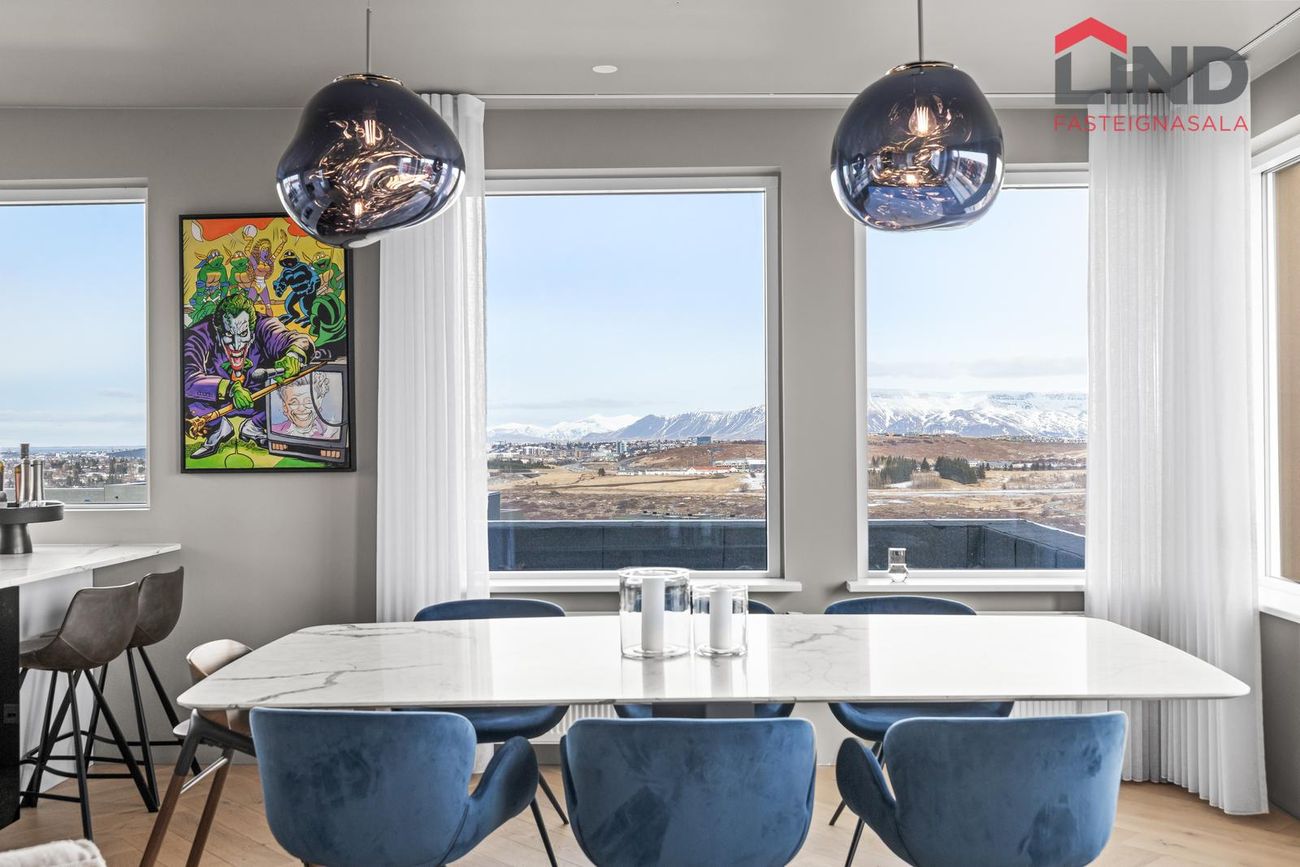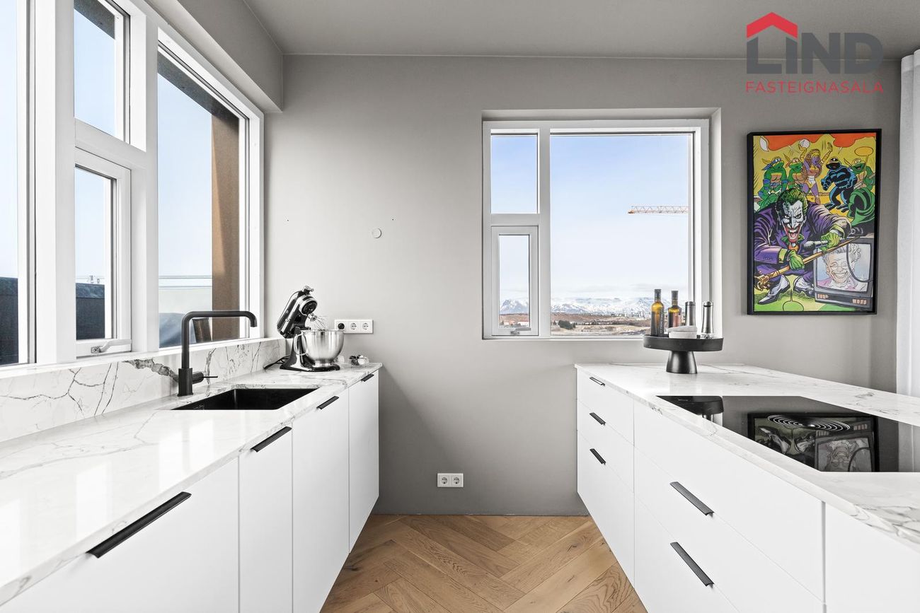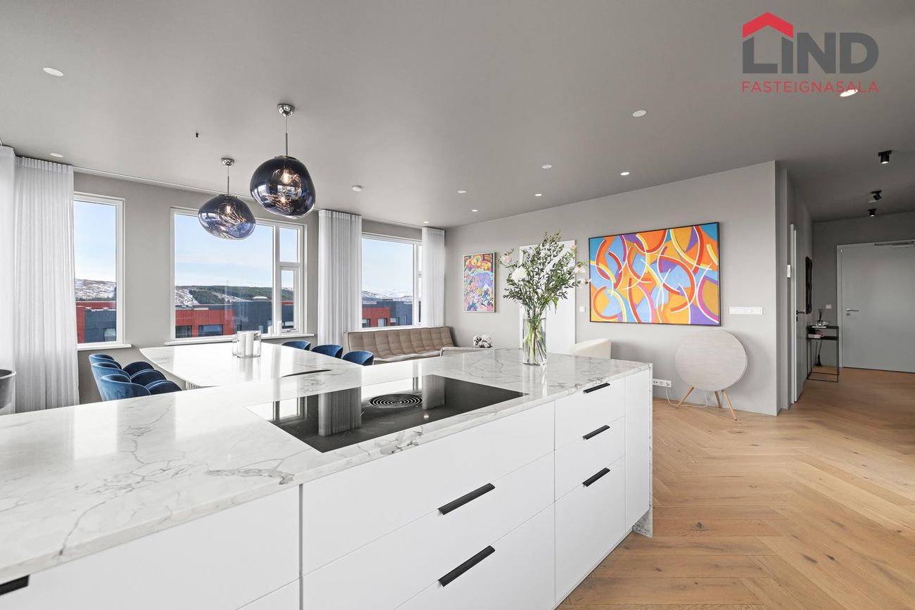 Heimir Hallgrímsson í síma: 849-0672 / heimir@fastlind.isNánari lýsing:Íbúðin skiptist í forstofu, eldhús með stórri eyju í alrými sem er opið við stofu/borðstofu. Sjónvarpsstofa, þrjú svefnherbergi, tvö baðherbergi (annað inn af hjónaherbergi) og þvottaherbergi. Útgengt á stórar svalir úr alrými. Sérgeymsla er 18,7 fermetrar og þrjú sérmerkt stæði í bílakjallara.