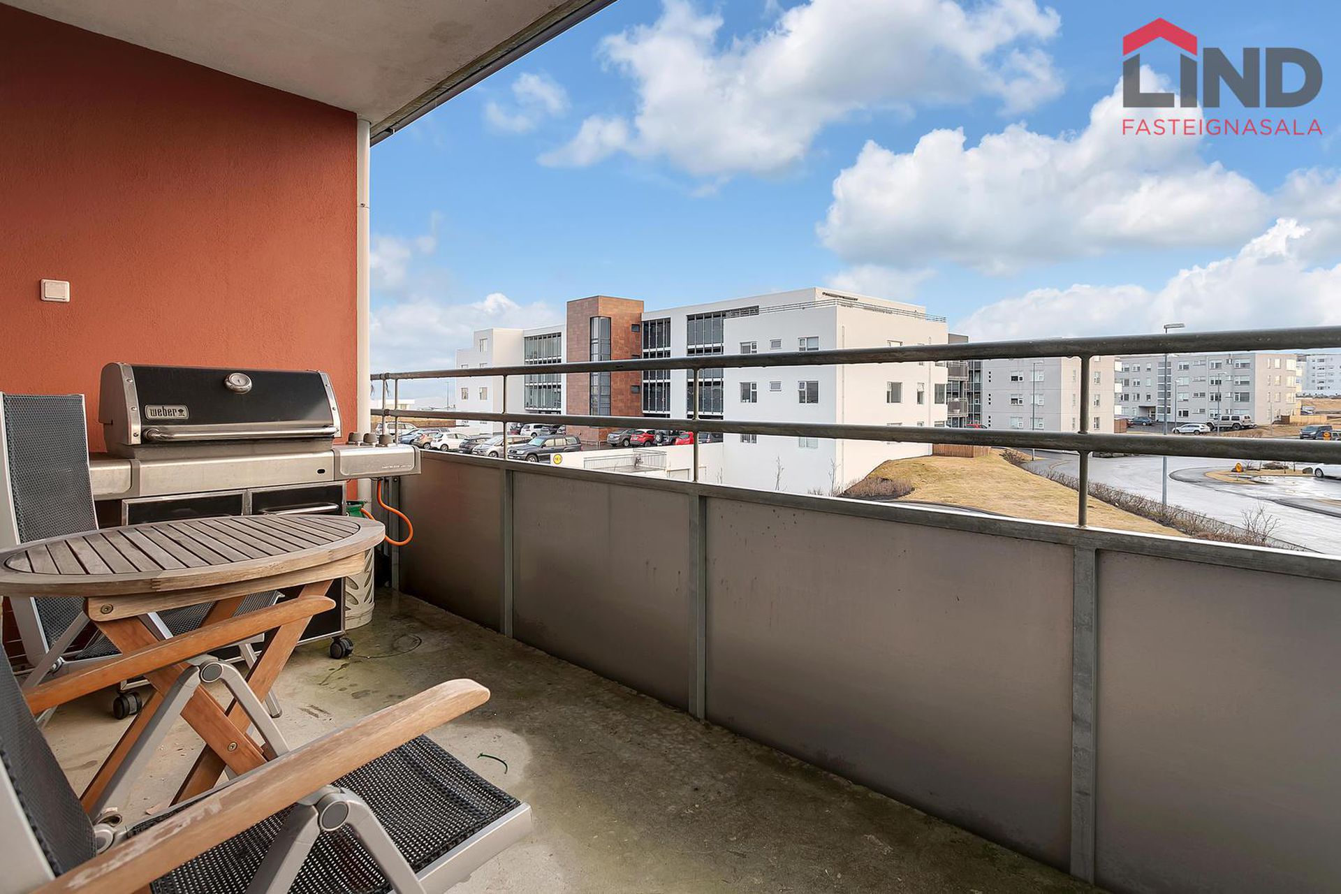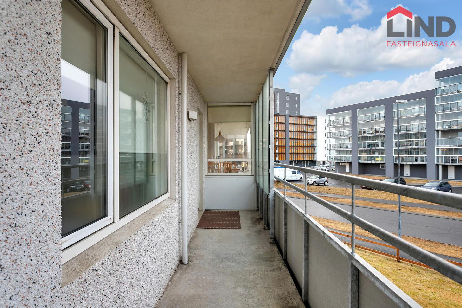 2 suðursvalir með plastmottum á svalabotni.