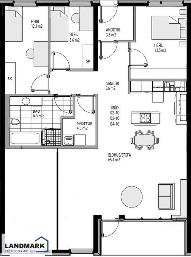 | 4 | 148,90 m² | 102.500.000 kr. 8. apríl 2026 | 58.300.000 kr. 25. febrúar 2019 |